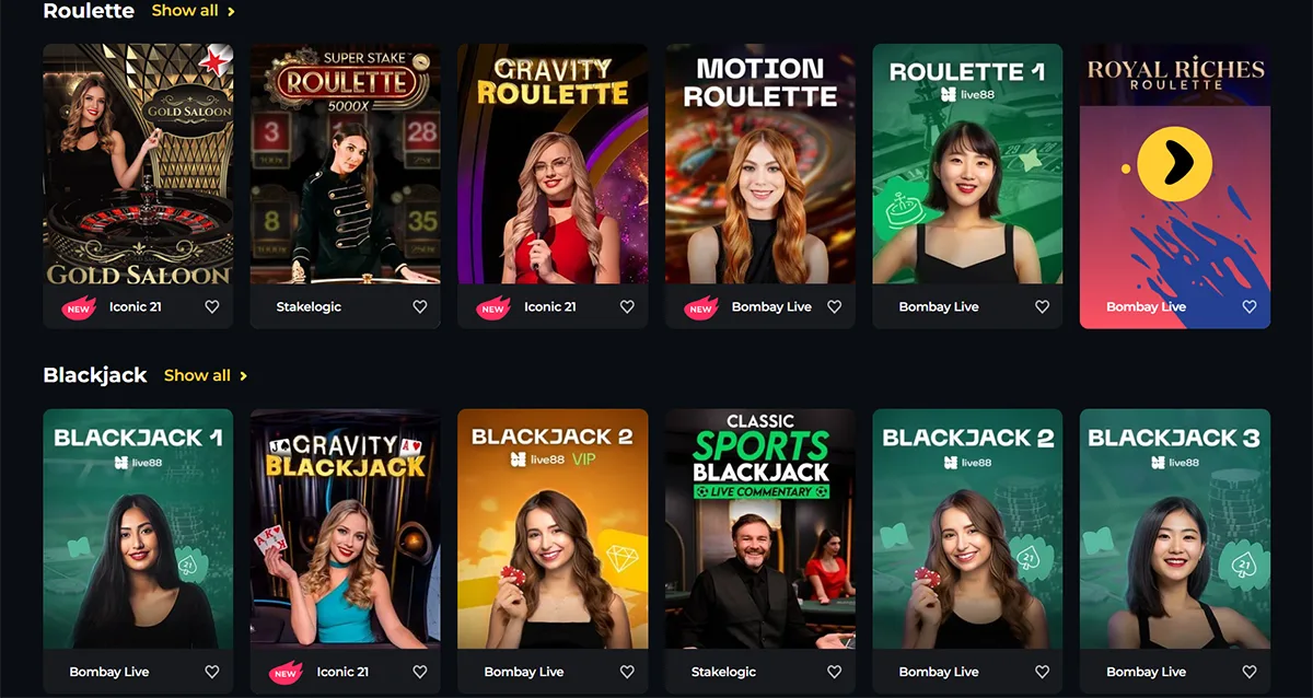 Rozsáhlá herní knihovna tvoří základ naší nabídky. Disponujeme více než 5000 hrami od předních vývojářů jako Pragmatic Play, NetEnt, Evolution Gaming a mnoha dalších.