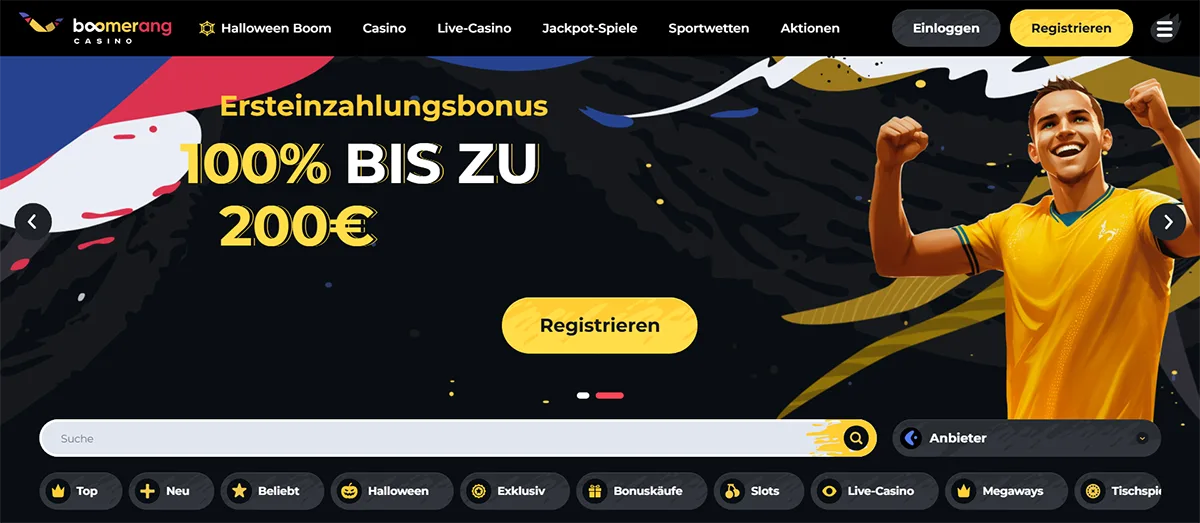 Boomerang Casino in Deutschland präsentiert sich als modernes Spielportal für Fans von Slots, klassischen Casinospielen und Sportwetten. Das 2020 gegründete Unternehmen ist kein Neuling auf dem Gambling-Markt und weiß, worauf es deutsche Spieler ankommt. Mit mehreren tausend Titeln, flexiblen Zahlungsmethoden, einem schnellen Support, einem problemlosen Boomerang Casino Login und attraktiven Bonusaktionen bietet es ein rundes Gesamtpaket. Wenn Sie sich für dieses Online Casino interessieren und prüfen möchten, ob es zu Ihnen passt, sind Sie hier genau richtig. In unserem Test haben wir uns alle wichtigen Bereiche genauer angesehen - von der Registrierung über die erste Einzahlung bis hin zur mobilen Boomerang Casino App. Hier erfahren Sie, wie das Boomerang Casino im Detail abschneidet und für wen sich die Anmeldung lohnt.