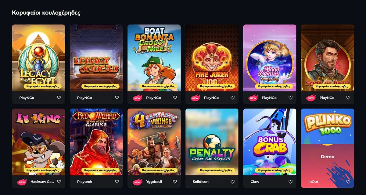 - Βυθιστείτε στον μαγευτικό κόσμο των κουλοχέρηδων, με κλασικά αγαπημένα και τις πιο πρόσφατες κυκλοφορίες με καινοτόμους μηχανισμούς και εκπληκτικά γραφικά.