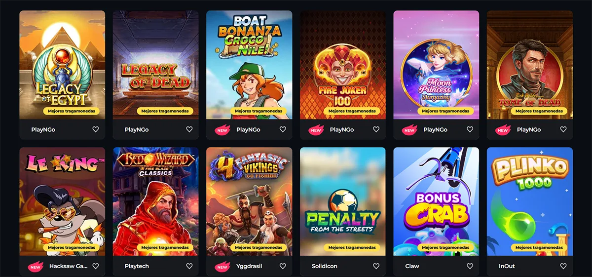 Ofrecemos una biblioteca inmensa de tragamonedas que incluye miles de títulos. Trabajamos con más de 80 proveedores líderes como Pragmatic Play, NetEnt, Play'n GO y Evolution Gaming.