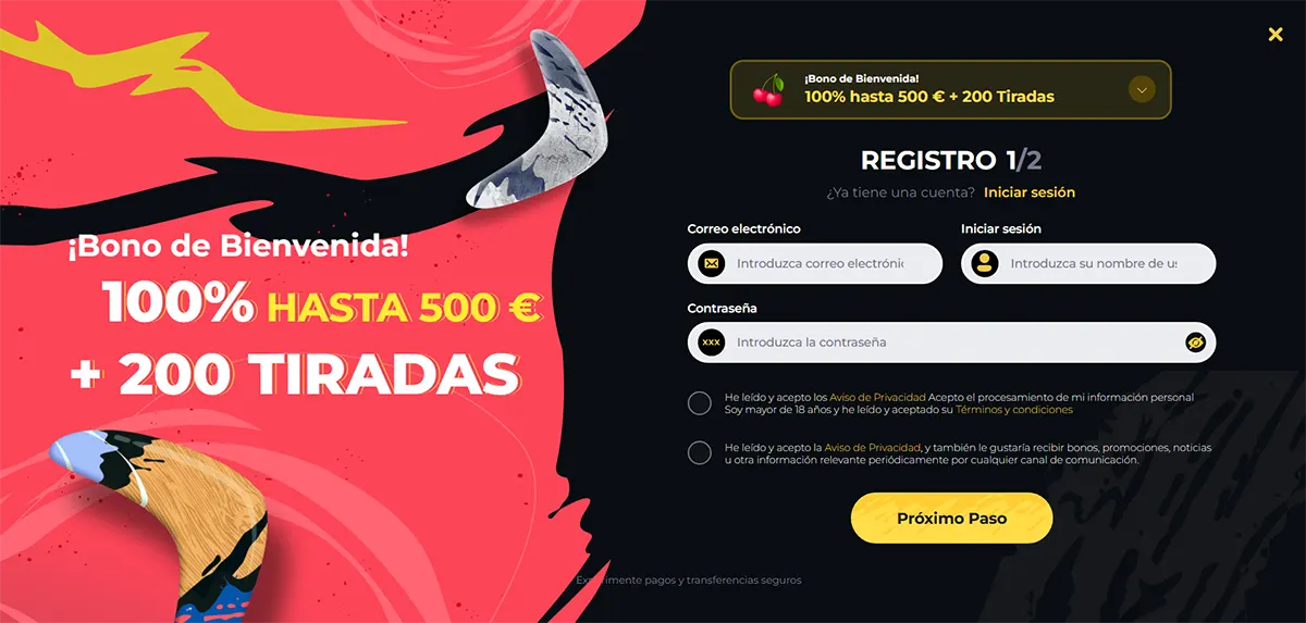 Cómo crear tu cuenta en Boomerang Casino